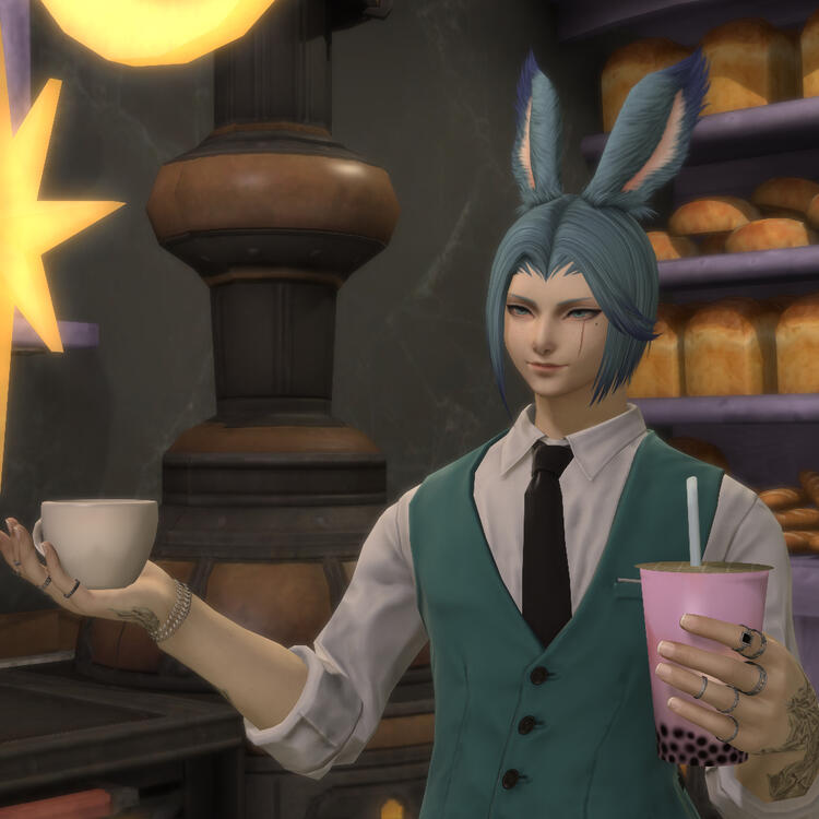 Owner • Head BartenderStoic in stance but warm at heart, Ymir runs The Dirty Bird with a steady hand and a quiet smile. A former Ishgardian Knight turned tavern owner, he brings discipline, strength, and a surprising gentleness to the bar. Known for his signature mixology skills, he can read a customer’s mood as easily as a drink order, crafting beverages that comfort, energize, or knock you on your ass, depending on what you need.When he’s not pouring the perfect pint or polishing glasses, he’s checking on the chocobos outside, offering a scratch under the beak like the softie he pretends he’s not. Loyal, hardworking, and deeply devoted to the people he loves, Ymir has turned this little western-styled bake shop and bar into a welcoming home for travelers, locals, and anyone in need of a warm drink and warmer company.Specialties: