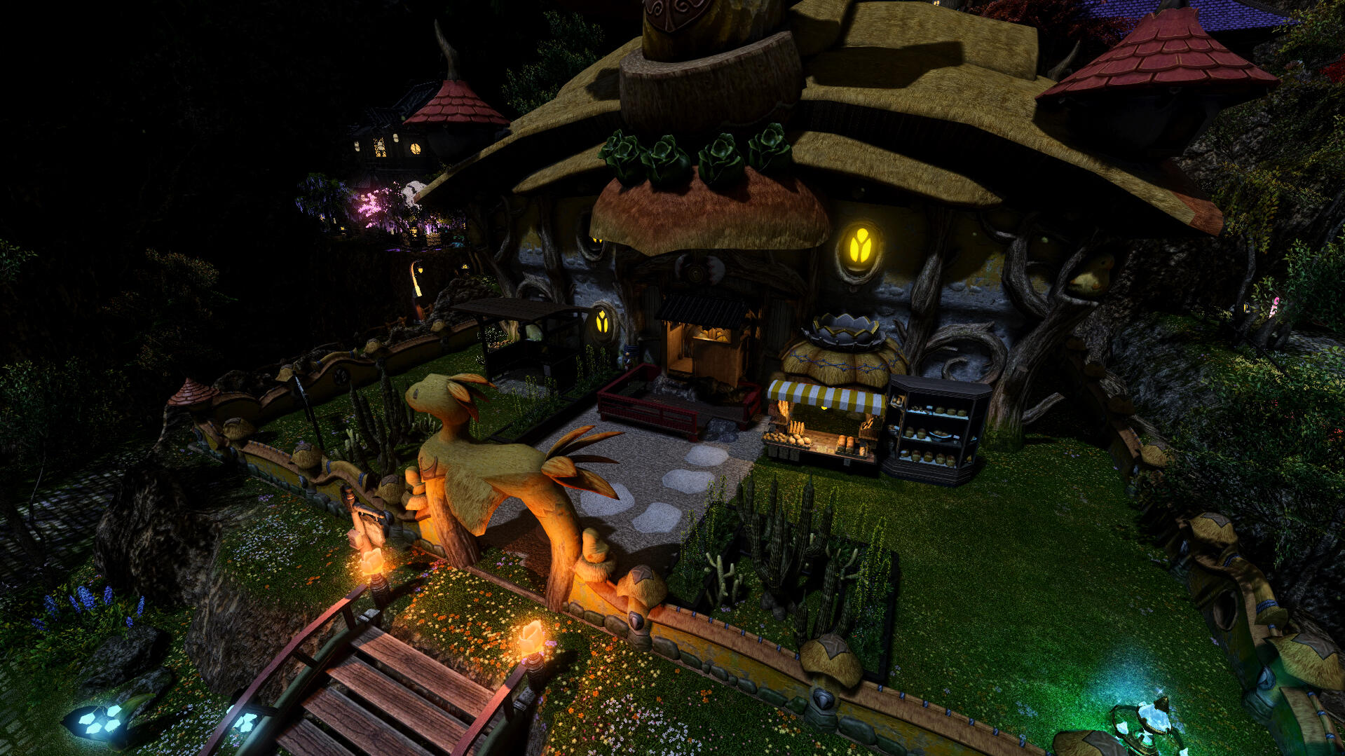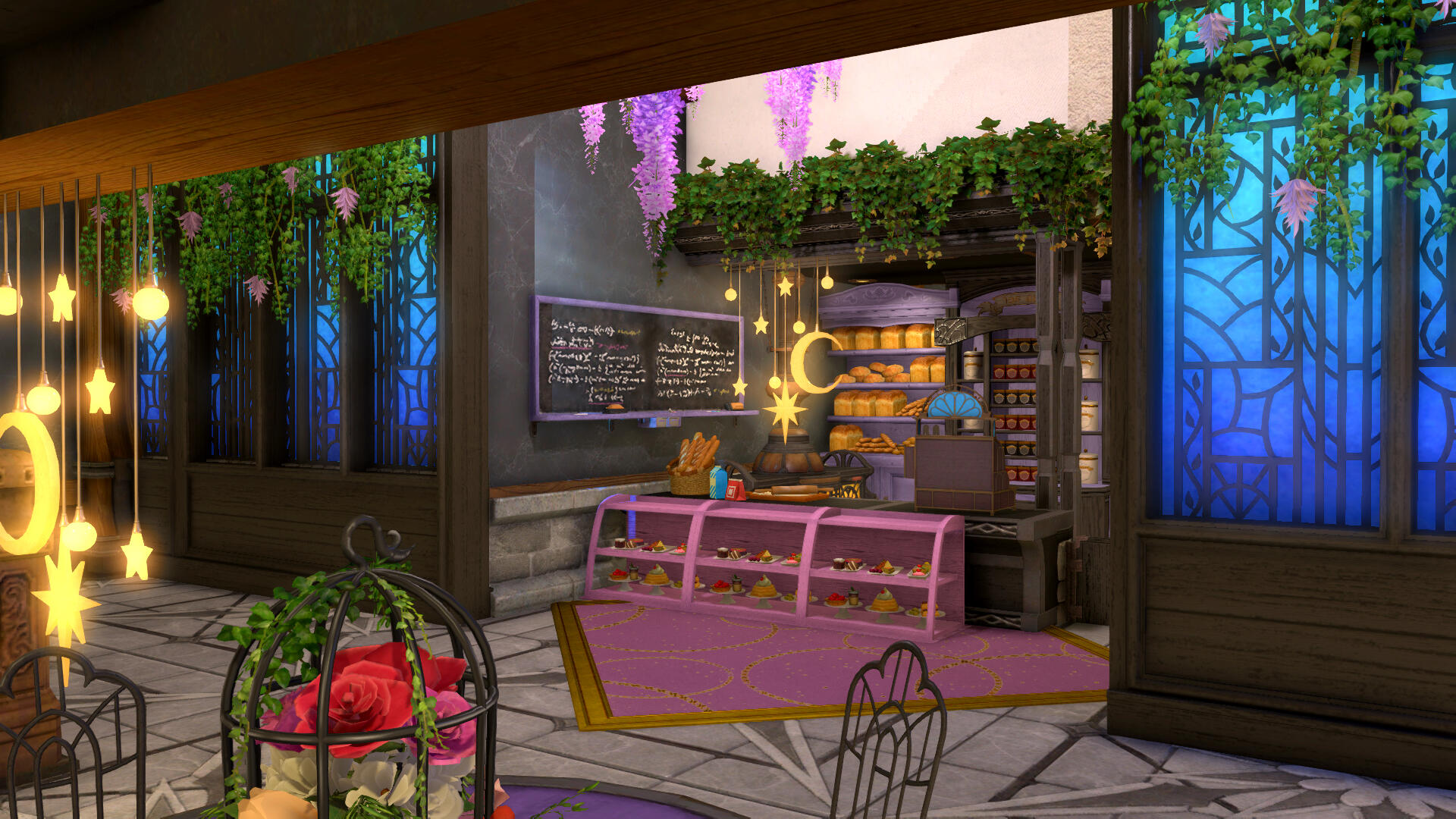 Run by Nyxella, a beautiful, white horned Au’ra who’s a master baker. The upstairs space is bright, cozy, and decorated with cute chocobo themes. There’s an outdoor display showing all the treats available that day, plus plenty of outdoor seating, including a large fire pit and several tables for guests to relax and enjoy pastriesThe cafe on the top floor is perfect for a cozy spot to sit and chat with friends and enjoy the creations of the master bakers.